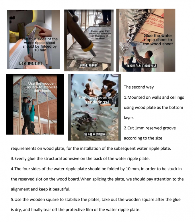 5.প্লেটগুলি স্থিতিশীল করতে কাঠের বর্গক্ষেত্র ব্যবহার করুন, আঠালো শুকিয়ে গেলে কাঠের বর্গক্ষেত্রটি বের করুন এবং অবশেষে জল তরঙ্গ প্লেটের প্রতিরক্ষামূলক ফিল্মটি ছিঁড়ে ফেলুন।